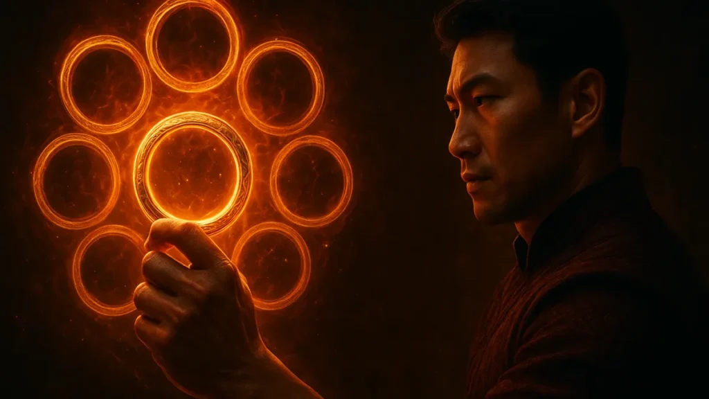 Quando o protagonista interage com os anéis, não é só força física em jogo. É transformação de identidade e reescrita do passado.